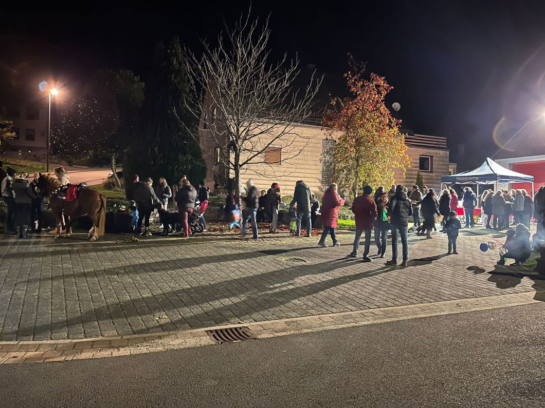 Mit musikalischer Begleitung führte „Sankt Martin“ auf seinem Ross die Kinder durch die Straßen. Halt fand der Zug am eigentlichen Veranstaltungsort in der Ortsmitte (am Feuerwehrgerätehaus).